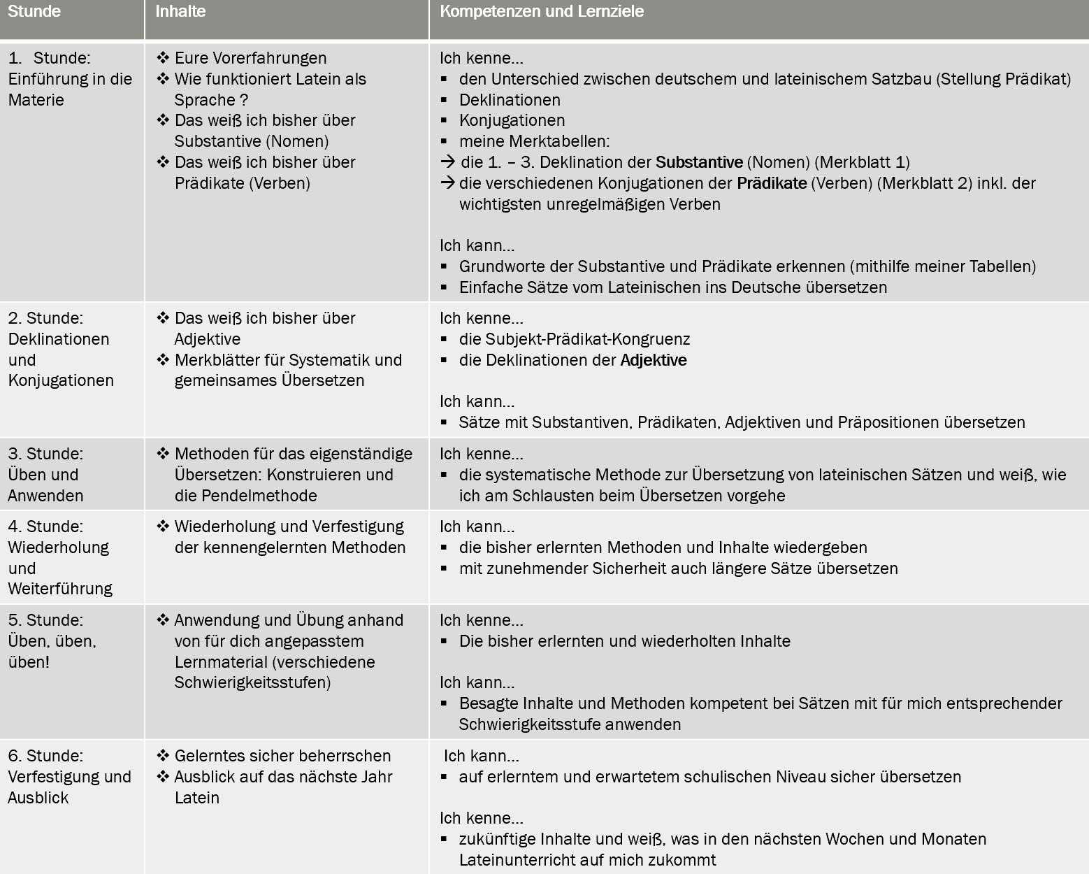 Latein ist eine ganz andere Sprache als andere Sprachen, die wir vielleicht schon kennen. Denn im Gegensatz zu Englisch, Französisch oder Deutsch wird Latein heute nicht mehr gesprochen. Dies ist auch der Grund, warum Latein für viele am Anfang erst einmal ganz schön kompliziert wirkt: Man muss diese Sprache schließlich von Grund auf neu lernen! Doch hier die gute Nachricht: Latein ist eine Sprache, die absolut systematisch - also nach bestimmten Regeln - funktioniert und sogar ziemlich viele Parallelen zum Deutschen hat. Mit diesem Crashkurs erlernst du die Systematik der Sprache, wichtige Methoden zum einfachen Übersetzen und wiederholst noch einmal die wichtigsten Basisinhalte deines bisherigen Lateinunterrichts, sodass du nach den Ferien fit und bereit für neue Inhalte in den Lateinunterricht starten kannst!